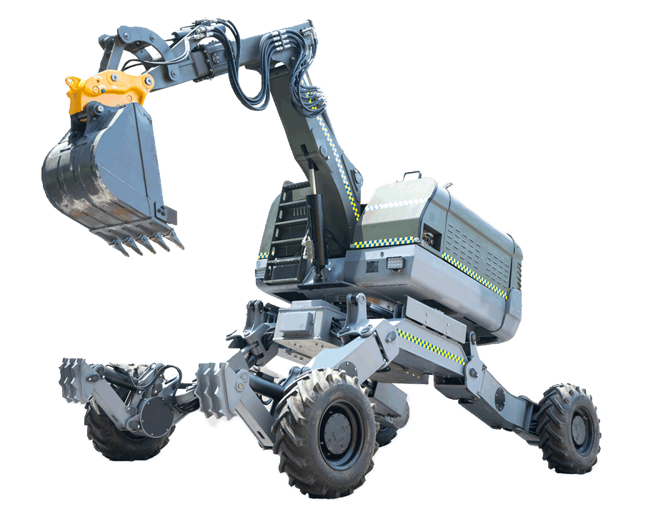 An efficient soil and stone handling machine, suitable for various terrain conditions